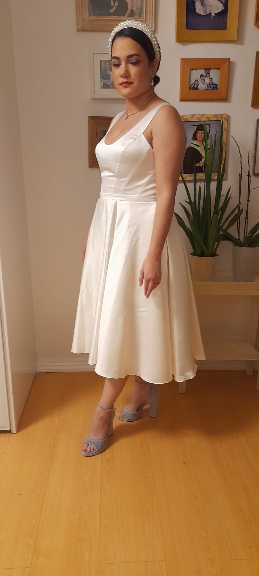This dress is awesome and I can’t wait to wear it on my wedding day. It’s very simple and has a perfect white matte look! I can’t believe how fast it got to me.